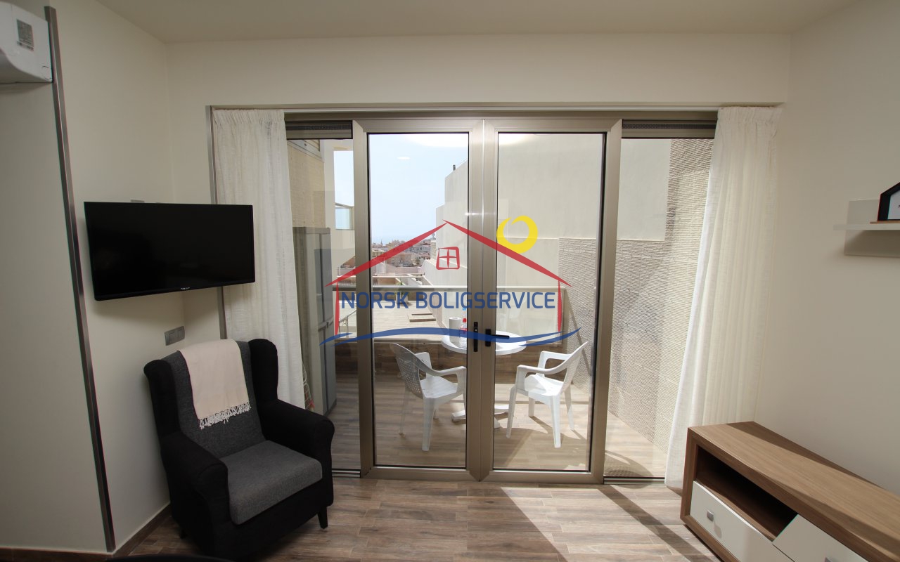 - Åpen stue med TV, sovesofa, utgang til terrasse