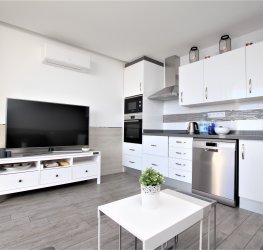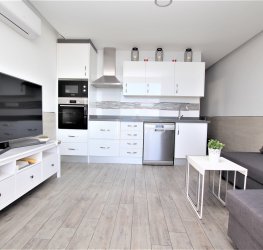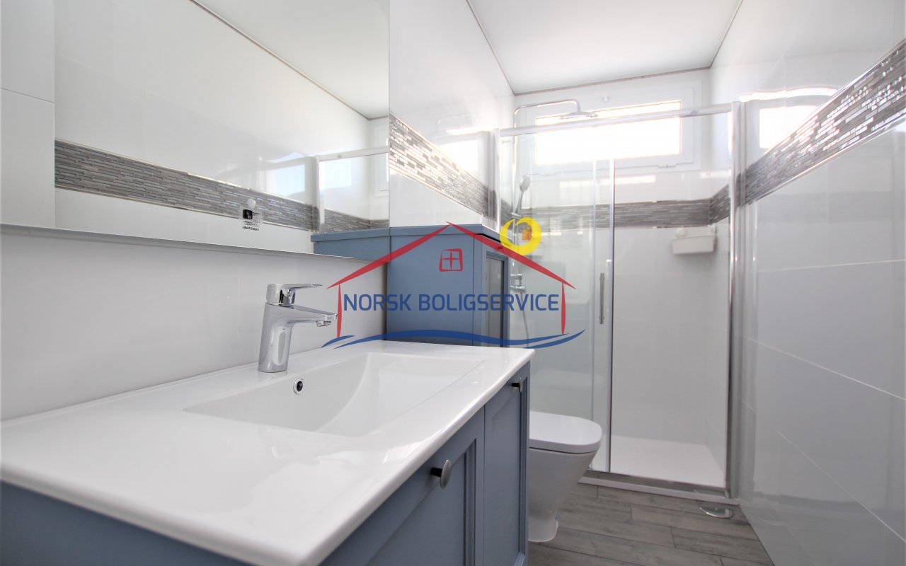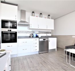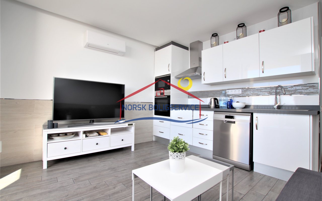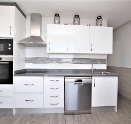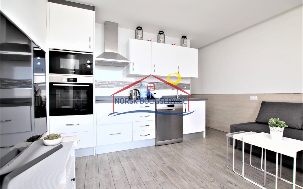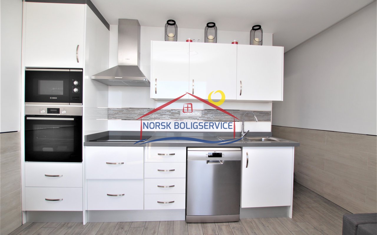 Nytt kjøkken utstyrt med stekeovn, mikro, keramikk med 4 plater, avtrekk, oppvaskmaskin, stort kjøleskap med fryser