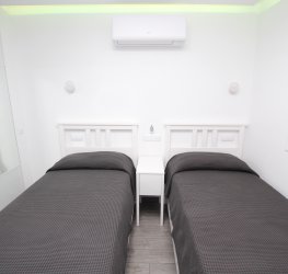 Soverom med 2 enkeltsenger for å lage en dobbel, stor garderobe, TV, air condition, vindu