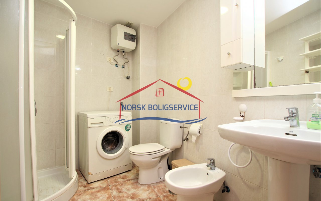 Bad med dusj, WC, vaskemaskin, termos, bidet
