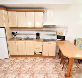 Kjøkken som ligger rett ved siden av stuen, er møblert, utstyrt med mikro, komfyr med 4 plater, avtrekk