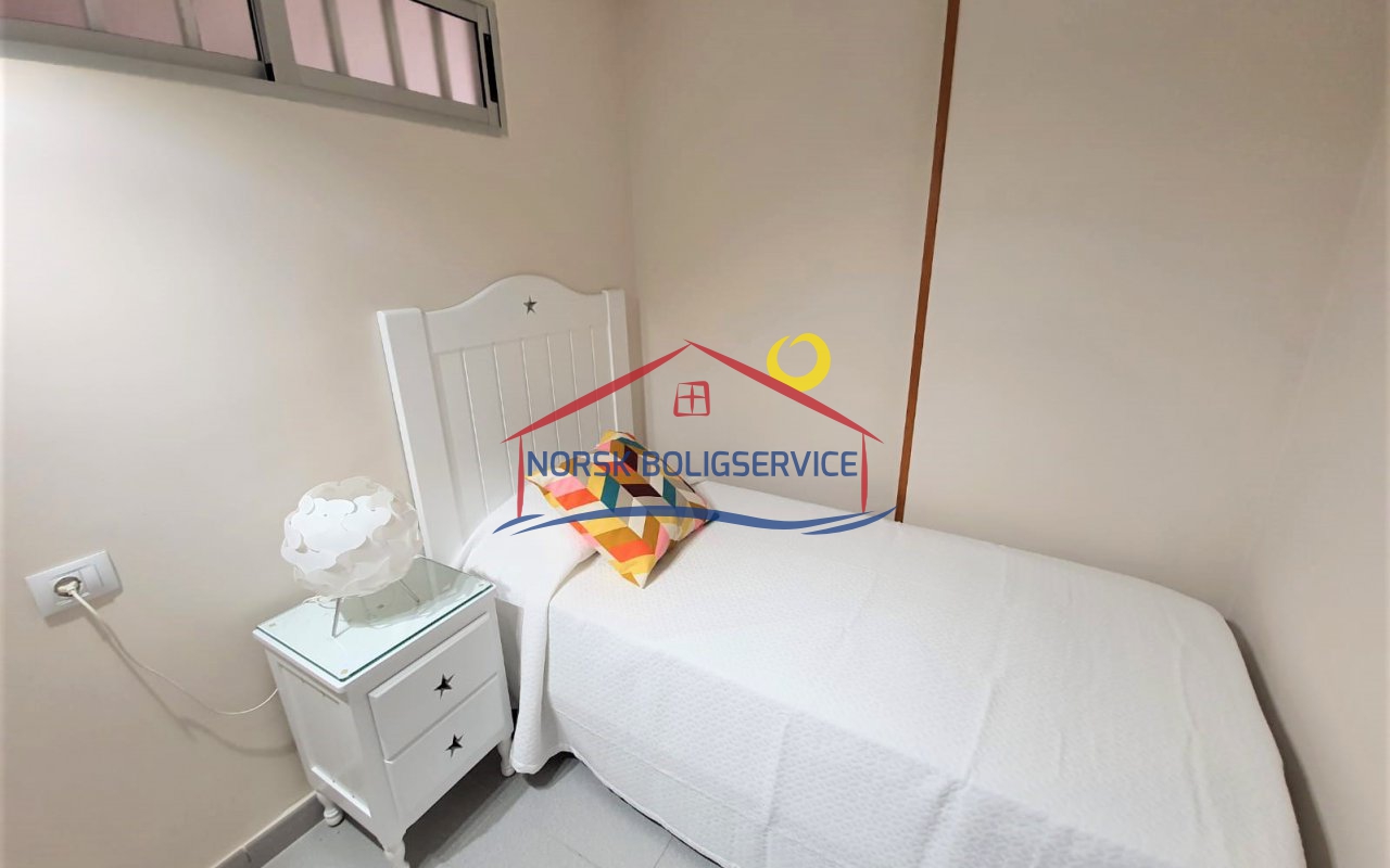 Leilighet til leie med 2 soverom i Arguineguin med havutsikt på Gran Canaria. Ligger i 2. etasje med utsikt over havet. I bygningen er det en dobbel heis, stranden ligger bare 100 meter fra felleshagen. Det er veldig sentralt, alle tjenester er innen få meter. Buss og drosje stopper bare 200 meter, veldig god forbindelse med resten av øya. Kostnadene for vann og strøm er inkludert opptil 60 euro per måned. Internett er ikke inkludert i prisen. Ingen kjælrdyr tillatt. Du kan ikke røyke inne i leiligheten.