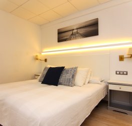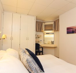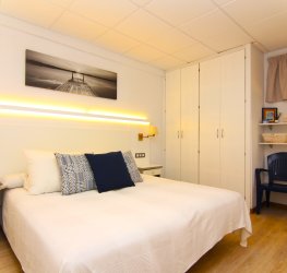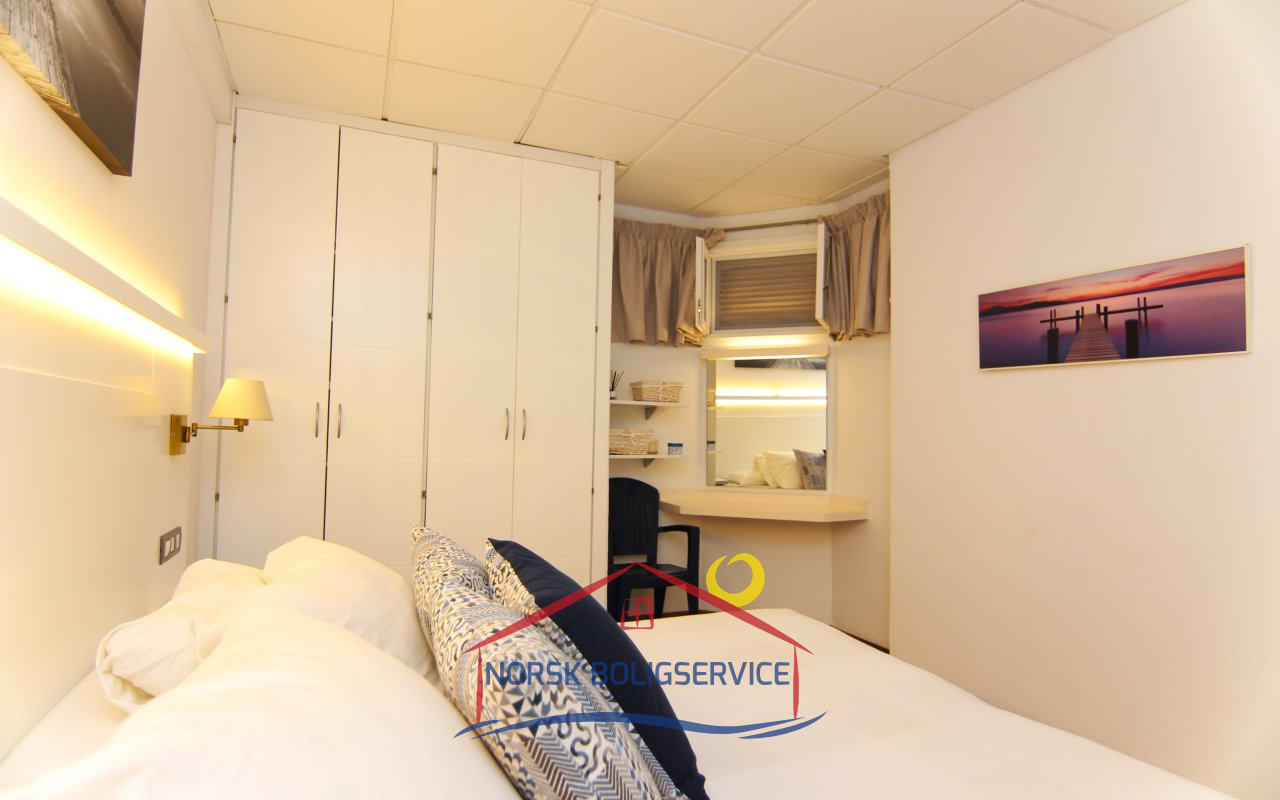 - Stort dobbelt soverom med minimalistisk og moderne innredning. I tillegg har den innebygde garderobeskap og ventilasjon gjennom et lite vindu.