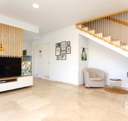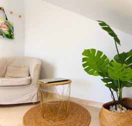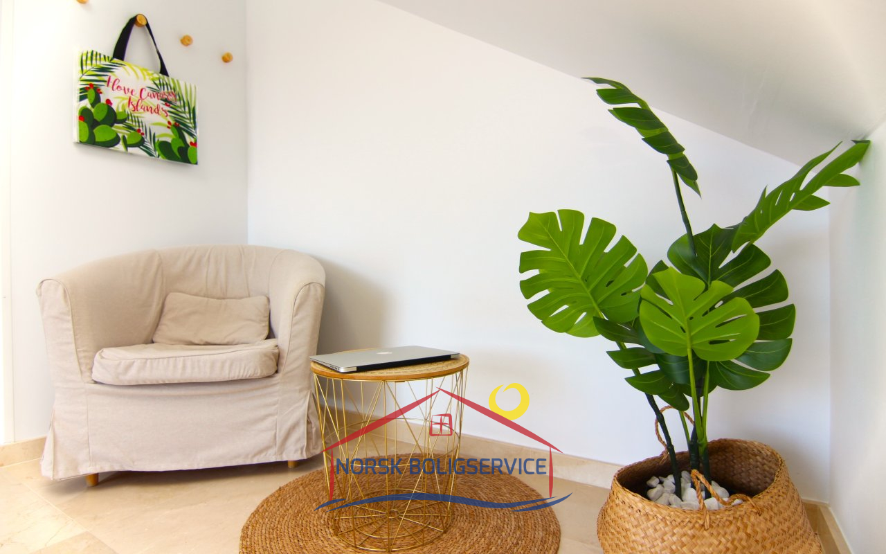 Det er en romslig to-etasjers leilighet med vakker utsikt over dalen i Puerto Rico. Designet er komfortabelt og innbydende med en moderne stil i beige og grønne toner for større ro.