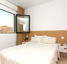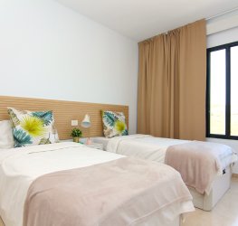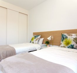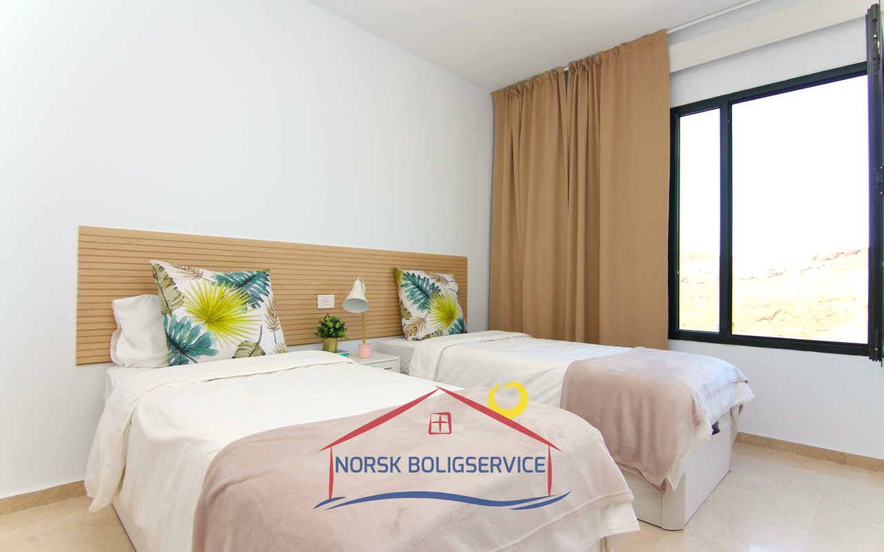 Stort soverom med to enkeltsenger med innebygget garderobeskap. Den har også et vindu med utsikt over dalen og hvorfra du kan dra nytte av naturlig lys i løpet av dagen.