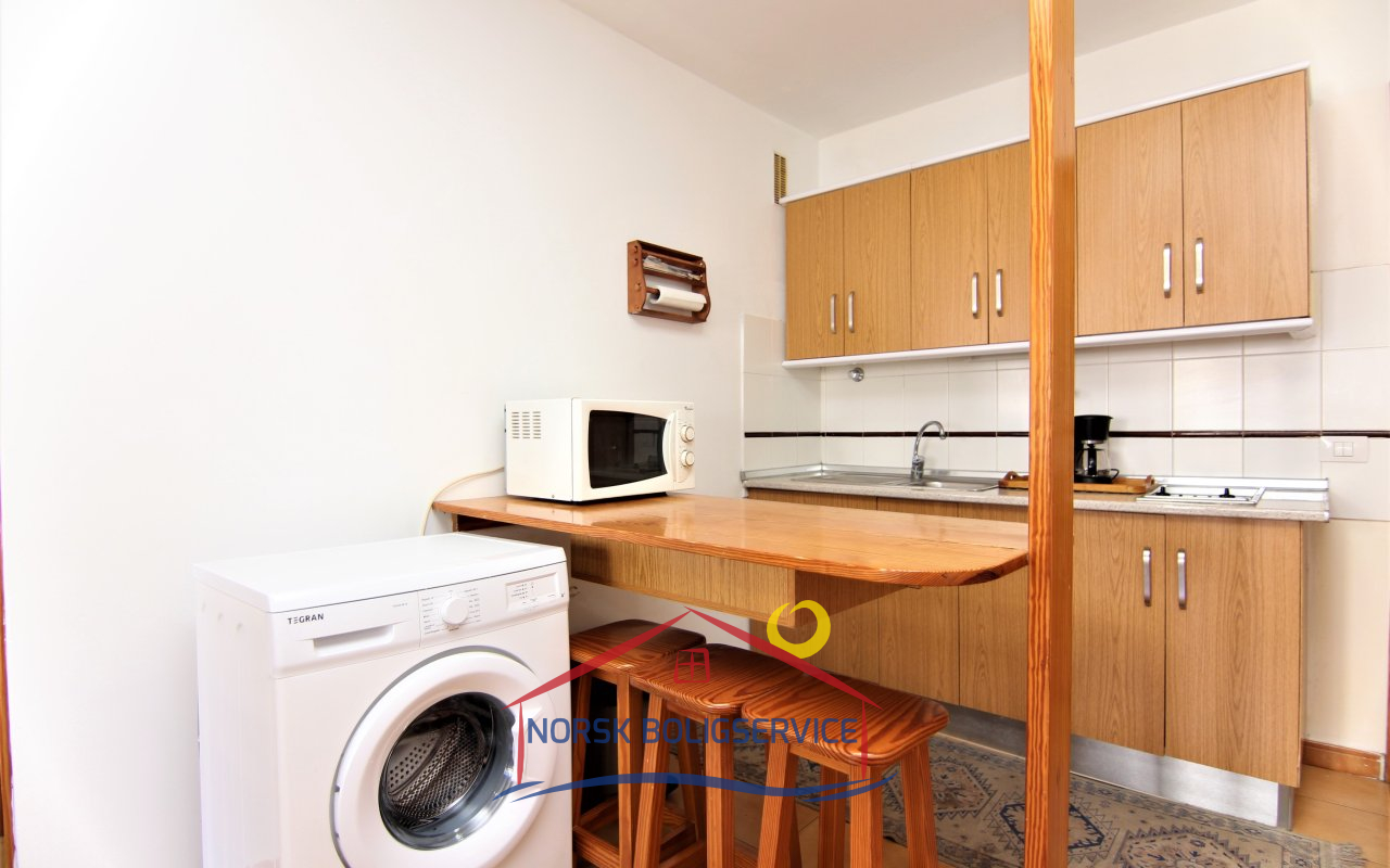 - Stue/kjøkken med kjøkkenbenk og tv, samt utgang til balkong. Dette er ideelt for hvile eller små sammenkomster