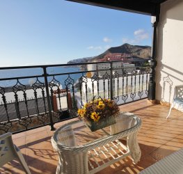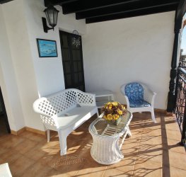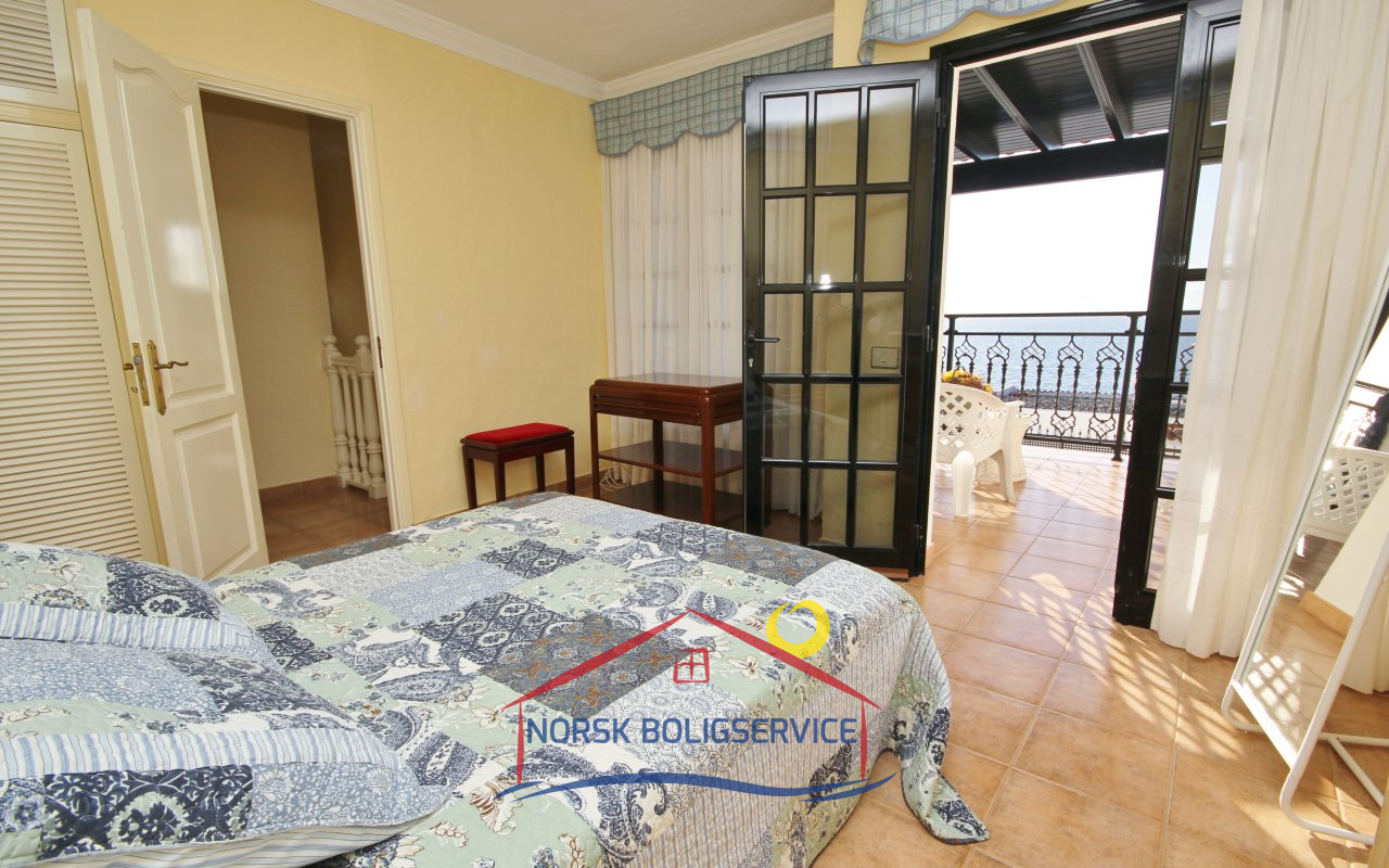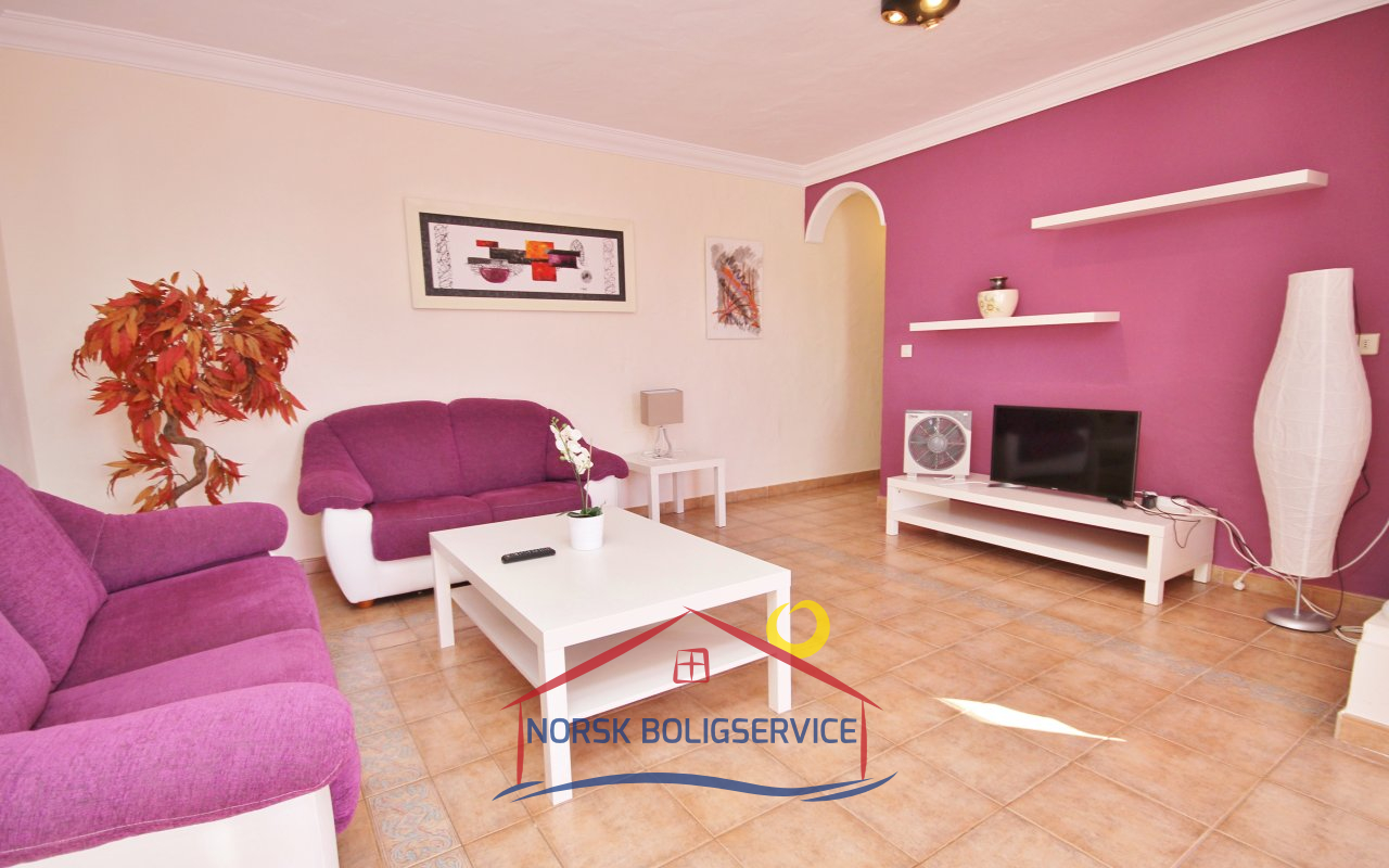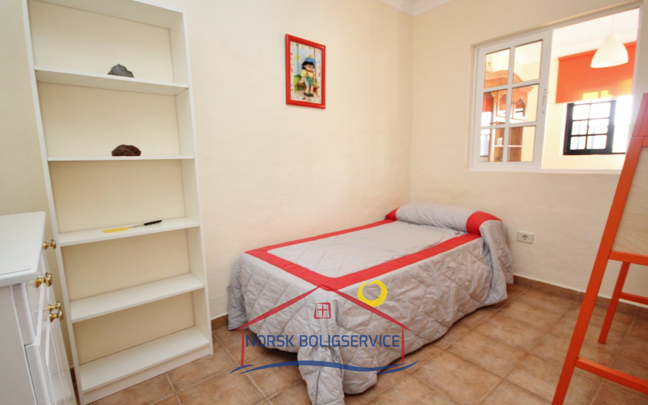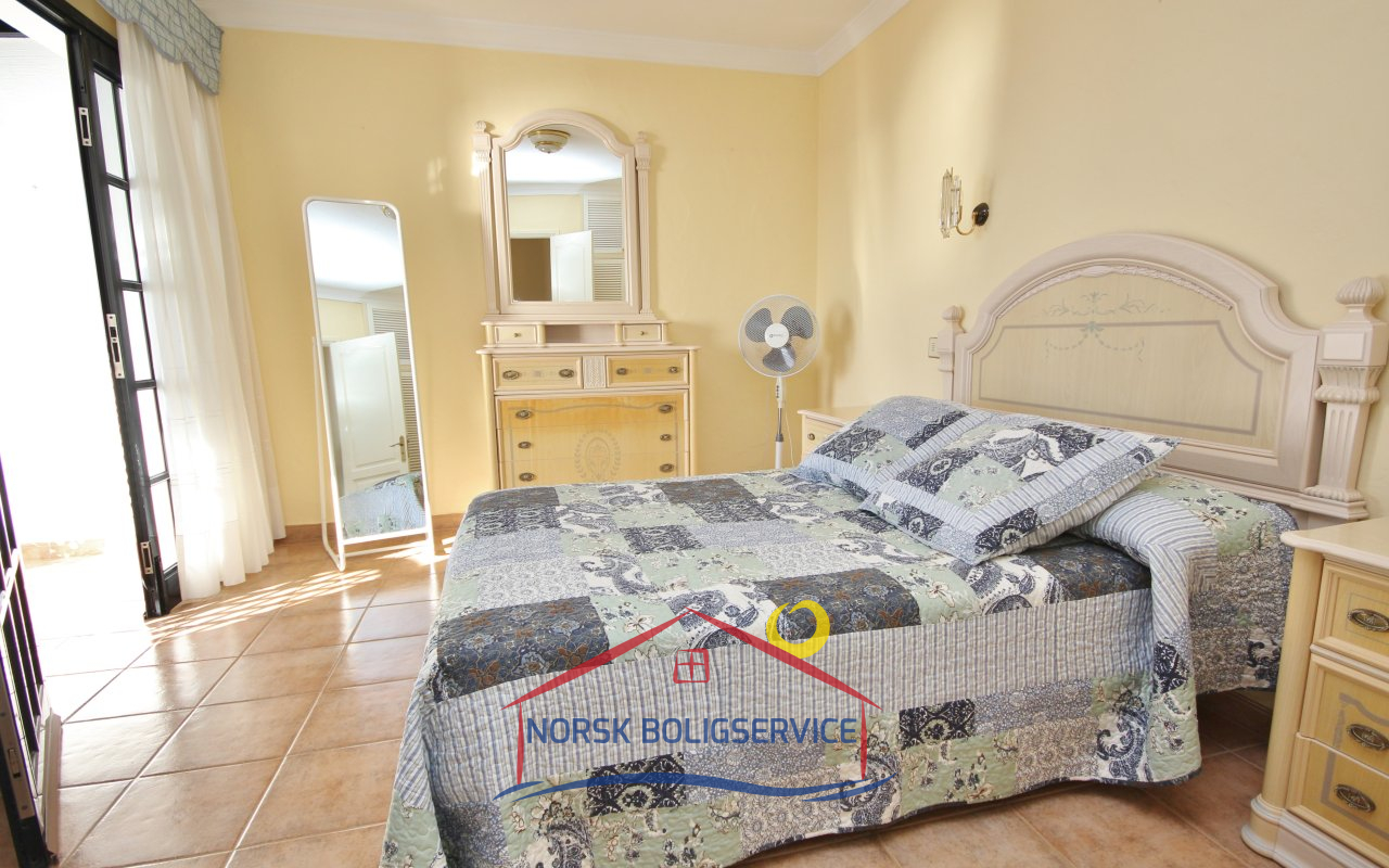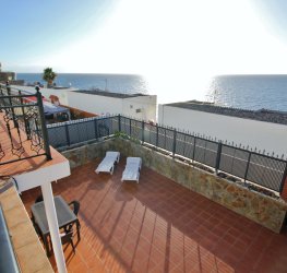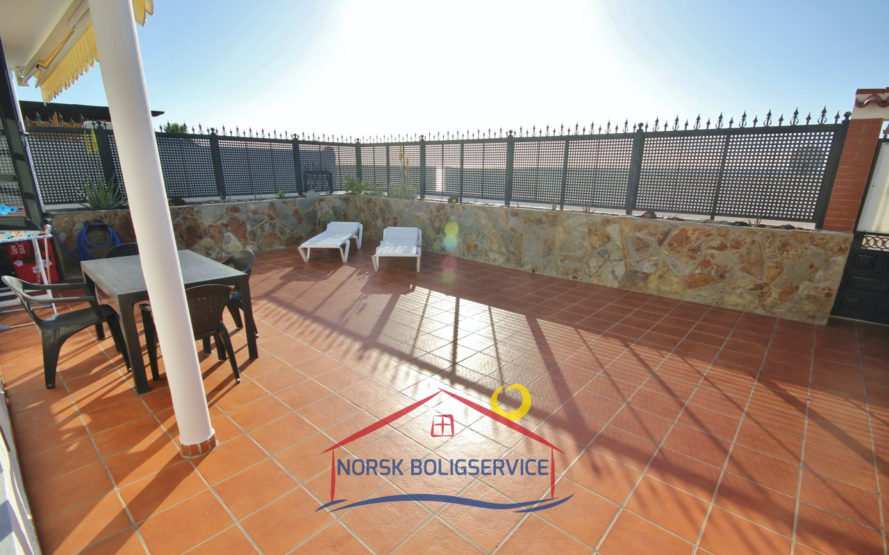 Fott rekkehus i Los Caideros. God standard. Stor solrik terrasse og balkong med flott havutsikt. 3 soverom og 2 bad med dusj. Separat kjøkken. Flere bassenger i komplekset. 5 minutter til Anfi- og Balito-strendene, nær den norske skole.