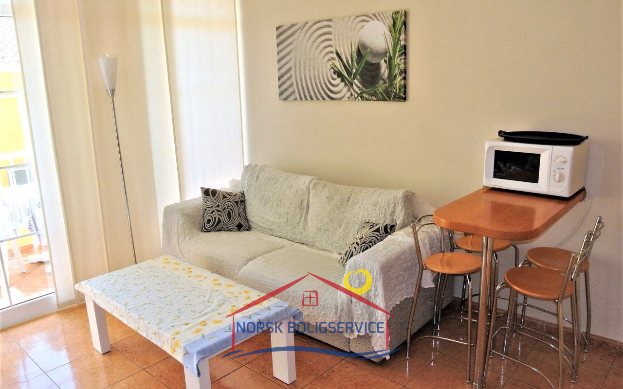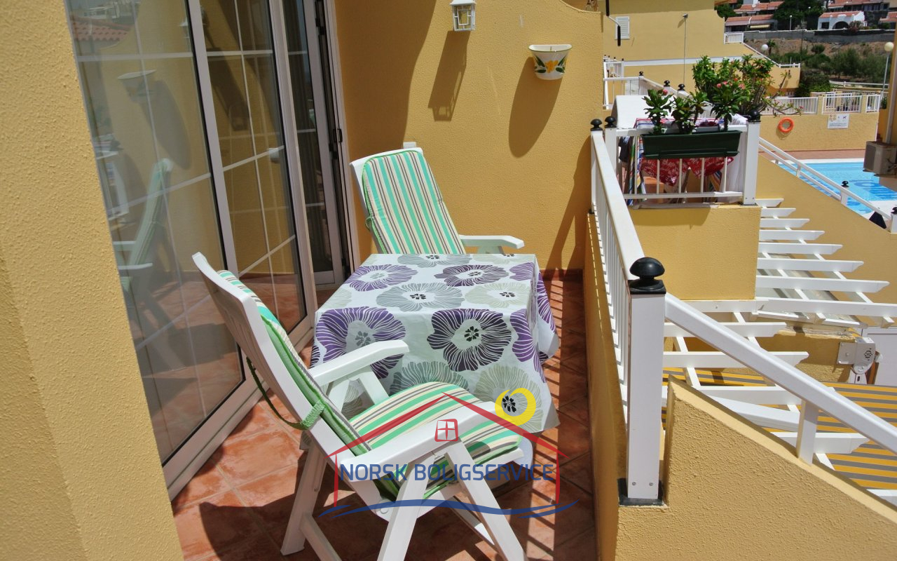 1-roms leilighet til leie ligger i et kompleks i Loma Dos, Arguineguin. Den har en fint terrasse med slipper glassdør. Komplekset har et felles basseng, internett er installert, har flere norske TV-kanaler. Kort vei til stranden og restauranter. Du kan parkere i hovedgaten. Langsesong å foretrekke (3-6-12 måneder). Rolig boligområde.
