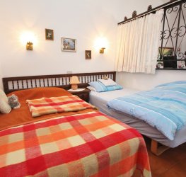 Soverom tilknyttet stuen. Det har to enkeltsenger og strukturen tillater frisk luft å komme inn fra terrassen.