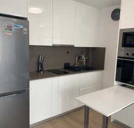 Moderne stue med åpen kjøkkenløsning, svært lys takket være naturlig lys fra direkte tilgang til terrassen. Kjøkkenet er fullt utstyrt, og stuen har en meget komfortabel sofa og TV.