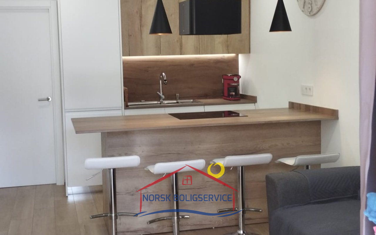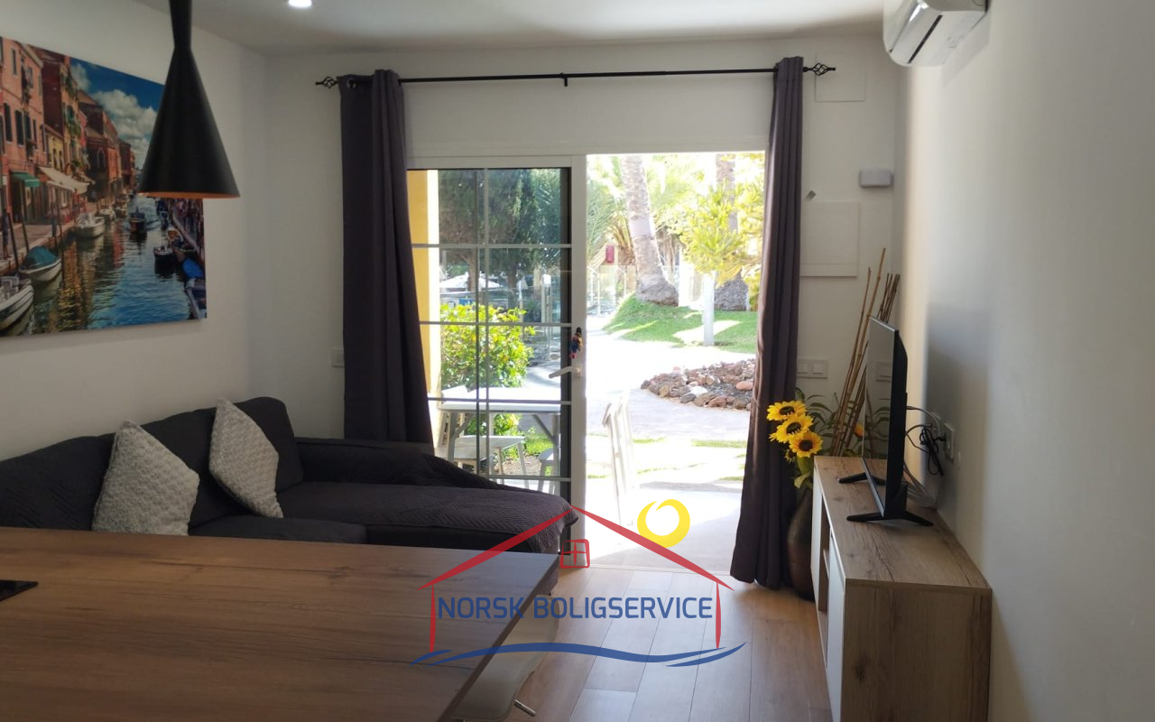 Dette er en renovert leilighet med et moderne, minimalistisk og praktisk design. Den er ideell for en eller to personer og har direkte tilgang til felles svømmebasseng. Leiligheten er klar for innflytting og ligger i et område som er perfekt for de som elsker fritidsaktiviteter, gastronomi og stranden.