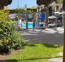 Komplekset har svømmebasseng og et område med solsenger for å nyte det varme klimaet på øya når som helst på året.