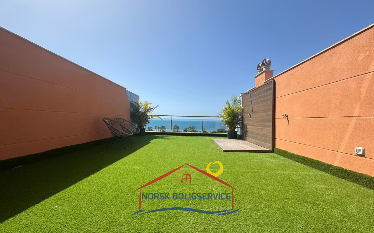 - Stor terrasse med havutsikt. Den har et område som er ideelt for soling og for å nyte måltider med venner utendørs.