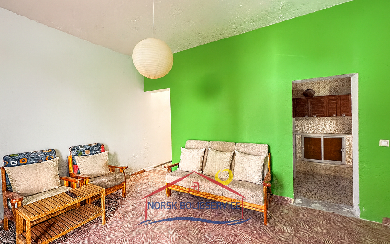 Boligen er delvis renovert og har rikelig med plass. Planløsningen er delt inn i tre områder, alle fullt utstyrt og med mulighet for å brukes som separate boenheter.