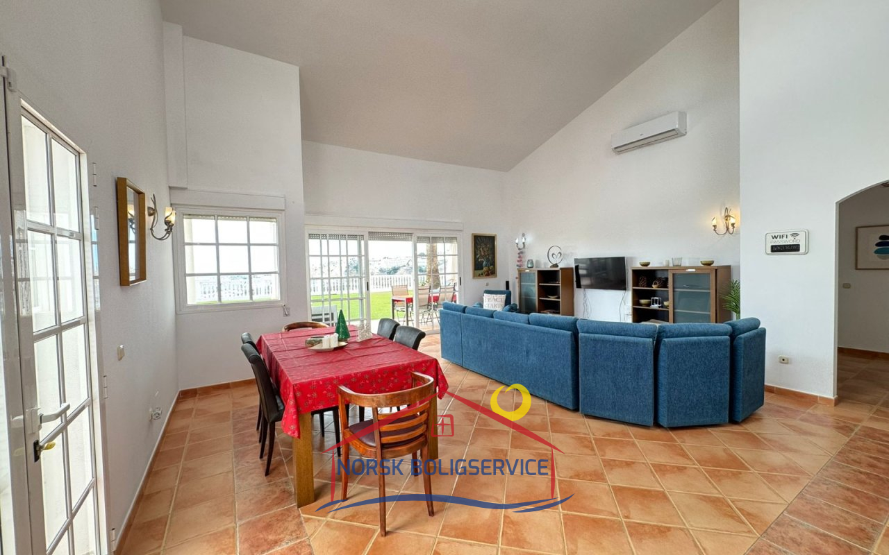 Svært romslig og lys stue og spisestue med direkte utgang til uteområdet