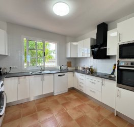 Fullt utstyrt og romslig kjøkken med rikelig naturlig lys