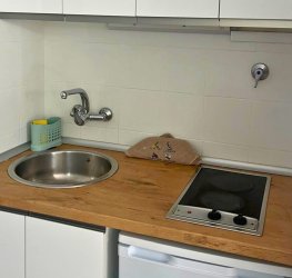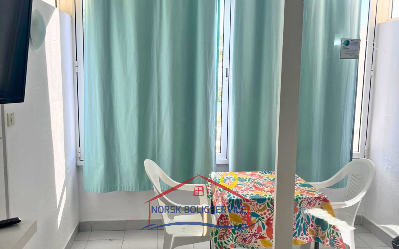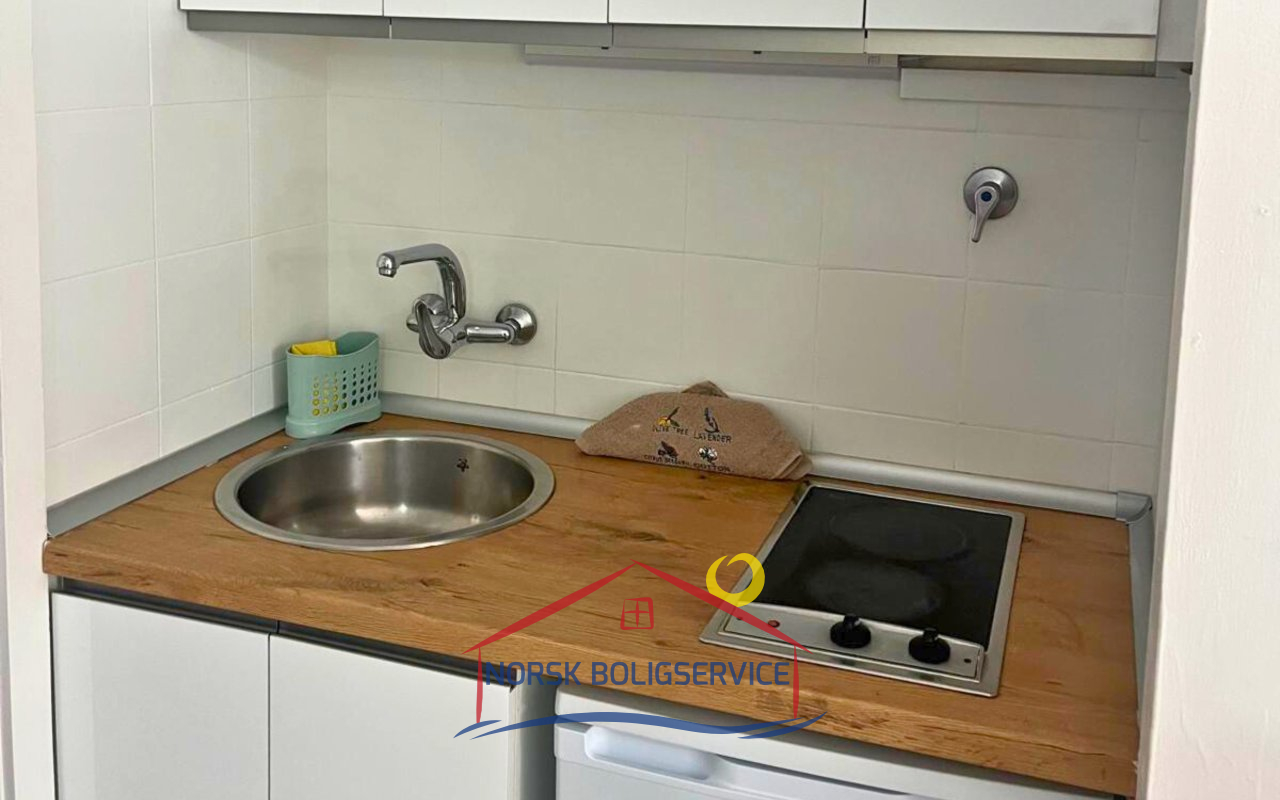 Studioleiligheten har en åpen og svært komfortabel planløsning med plass til 2 personer. Den vender mot sør og får naturlig sollys nesten hele dagen. Den har en koselig atmosfære og også en veldig fin utsikt over havet.